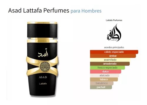 es una fragancia de la familia olfativa Oriental para Hombres. Asad se lanzó en 2021. Las Notas de Salida son pimienta negra, tabaco y piña; las Notas de Corazón son pachulí, café y iris; las Notas de Fondo son vainilla, ámbar, Madera seca, benjuí y ládano